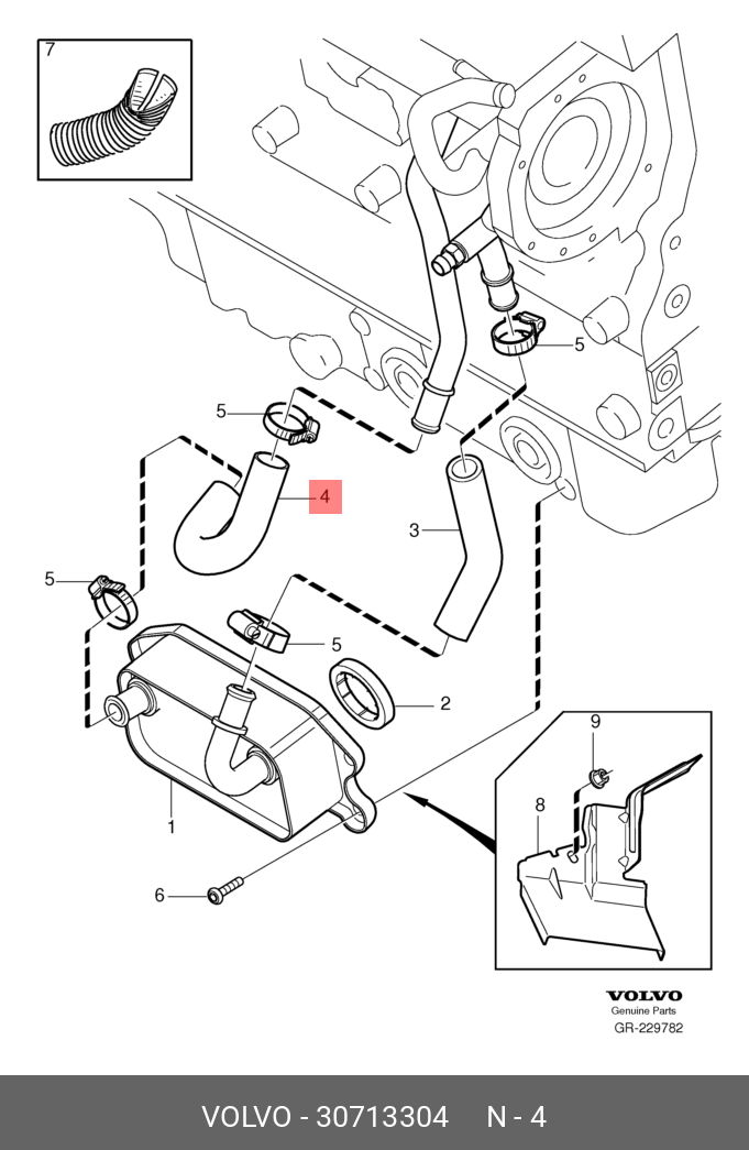 Kælivatnshosa Volvo við olíukælir (OEM)